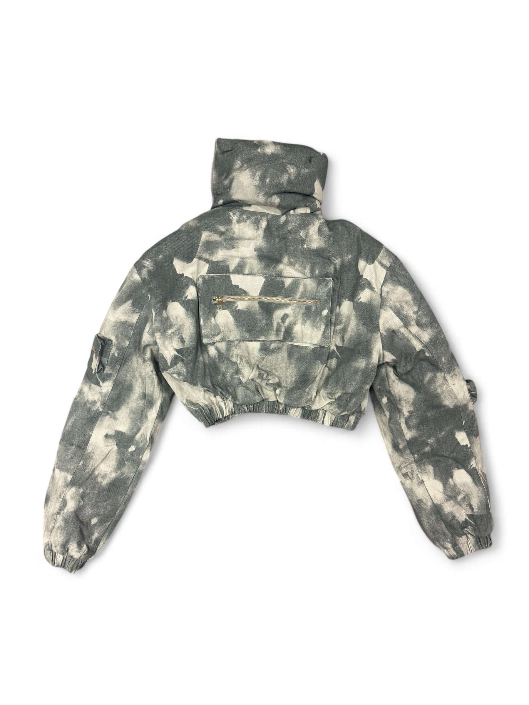 Acid Wash Denim Cropped Puffer Jacket