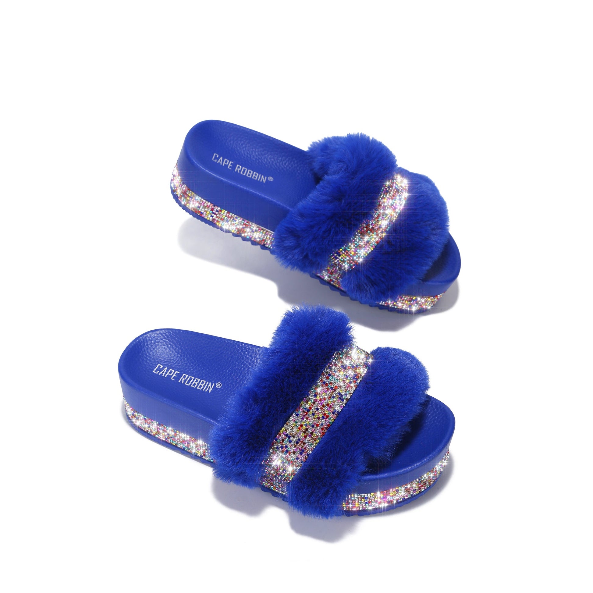 These two strap Slipper/Slide are comfortable because of the soft faux fur through out the entire shoe
