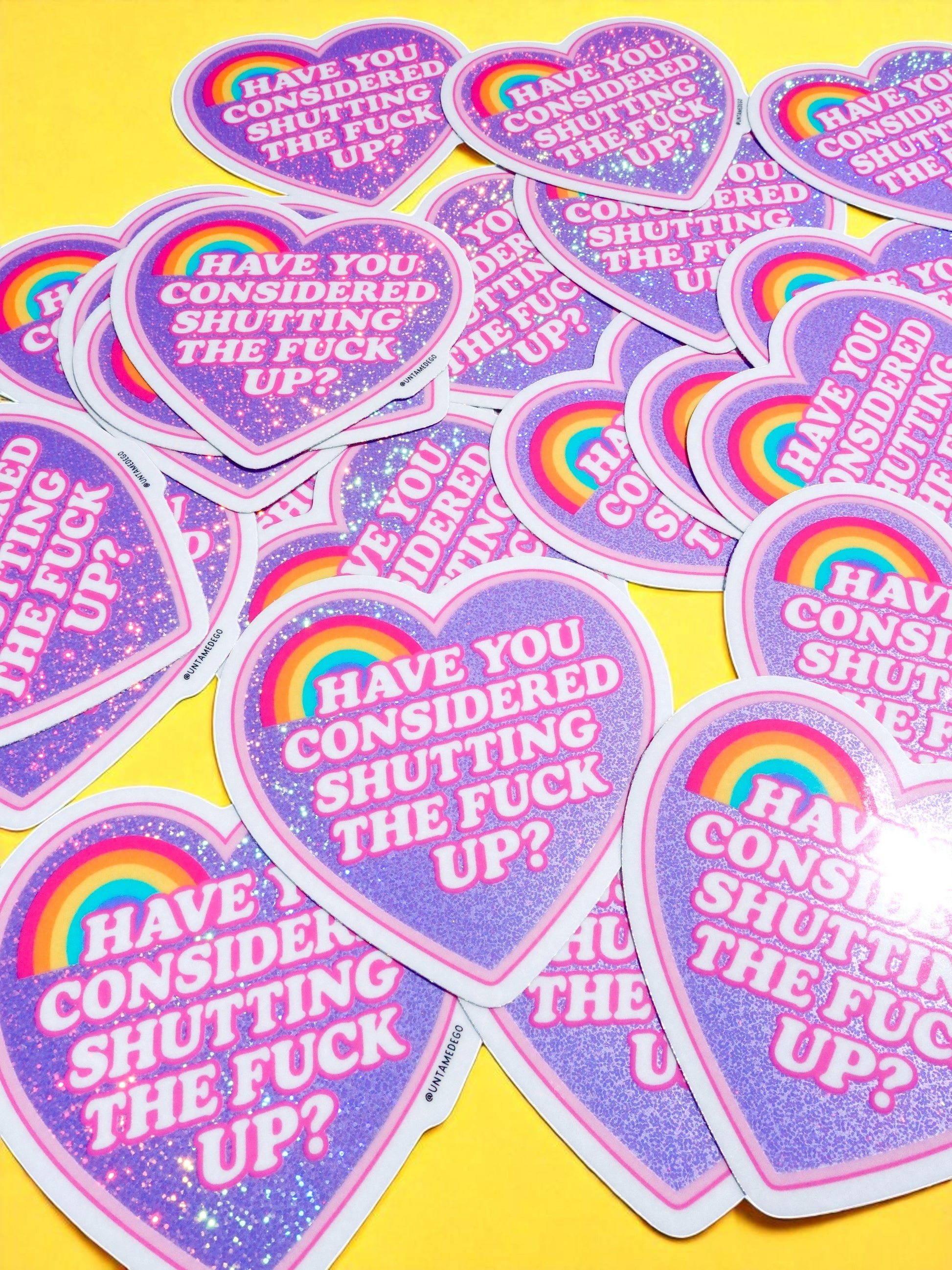 Have You Considered – Funny Heart Rainbow Glitter Vinyl Sticker