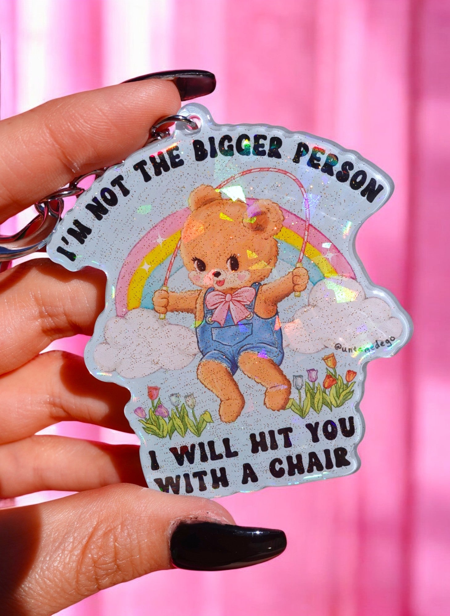 I'm Not The Bigger Person I Will Hit You With A Chair Holographic Keychain