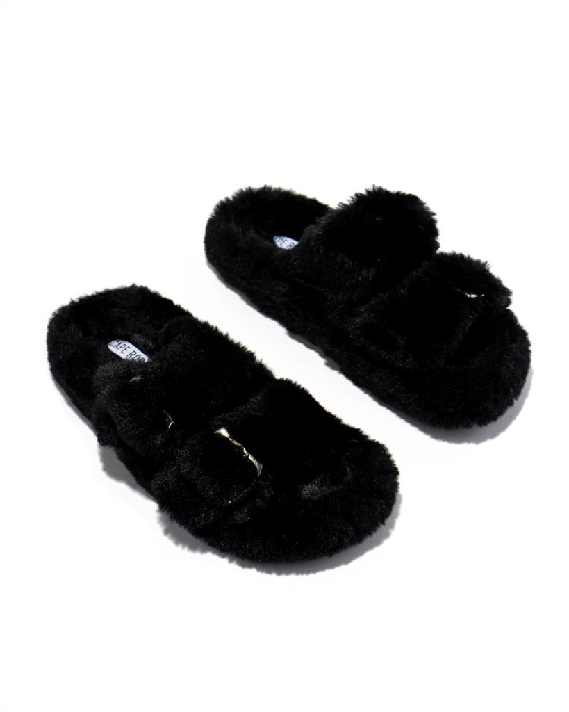 These two strap Slipper/Slide are comfortable because of the soft faux fur through out the entire shoe