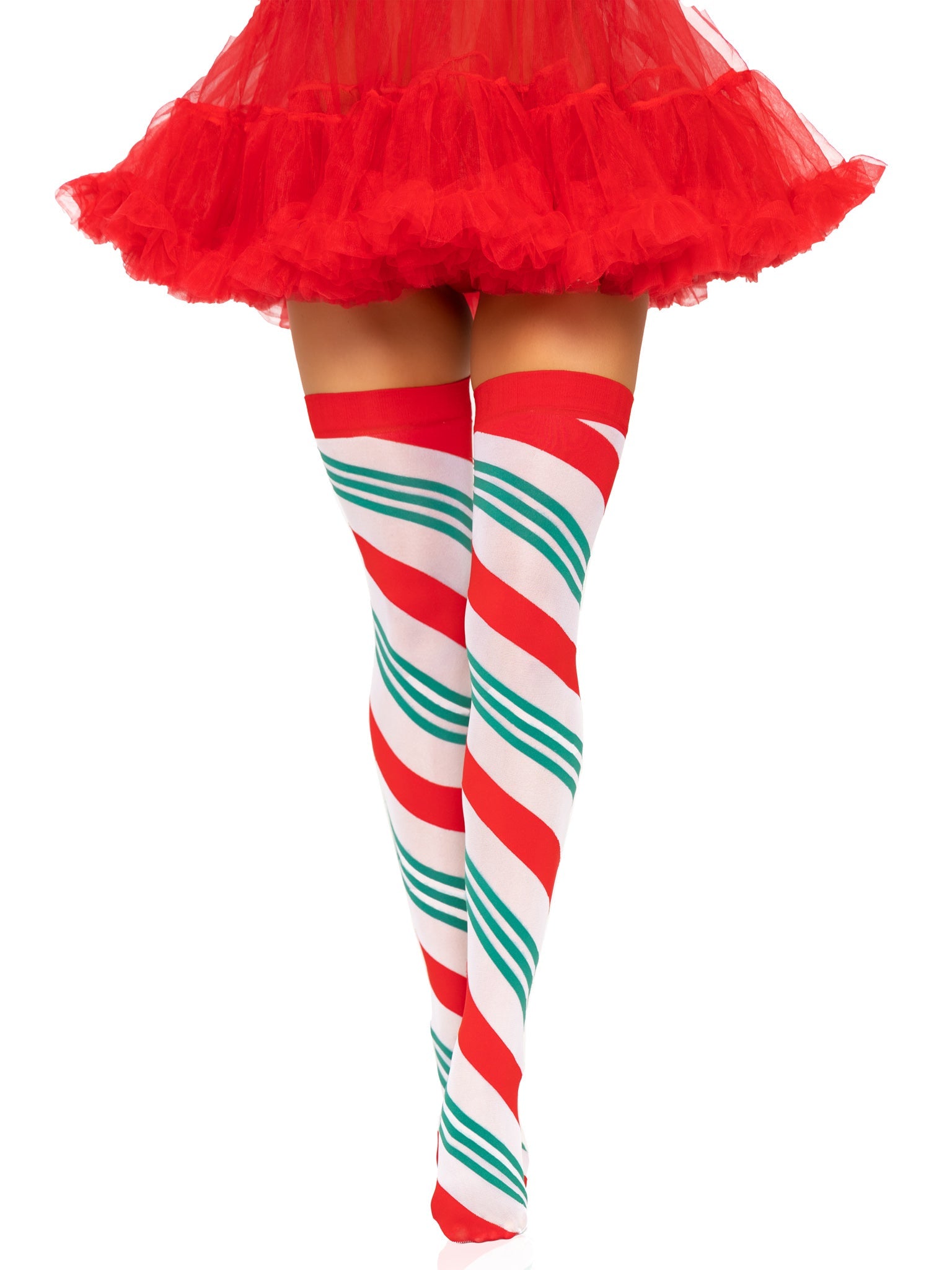 Show them that you're a gift with the Jolly Holiday thigh highs by Leg Avenue. A perfect blend of holiday spirit and flirty fashion accessory, these stockings pair perfectly with holiday looks and Christmas costumes, or wear with a garter belt for a naughty Christmas surprise.