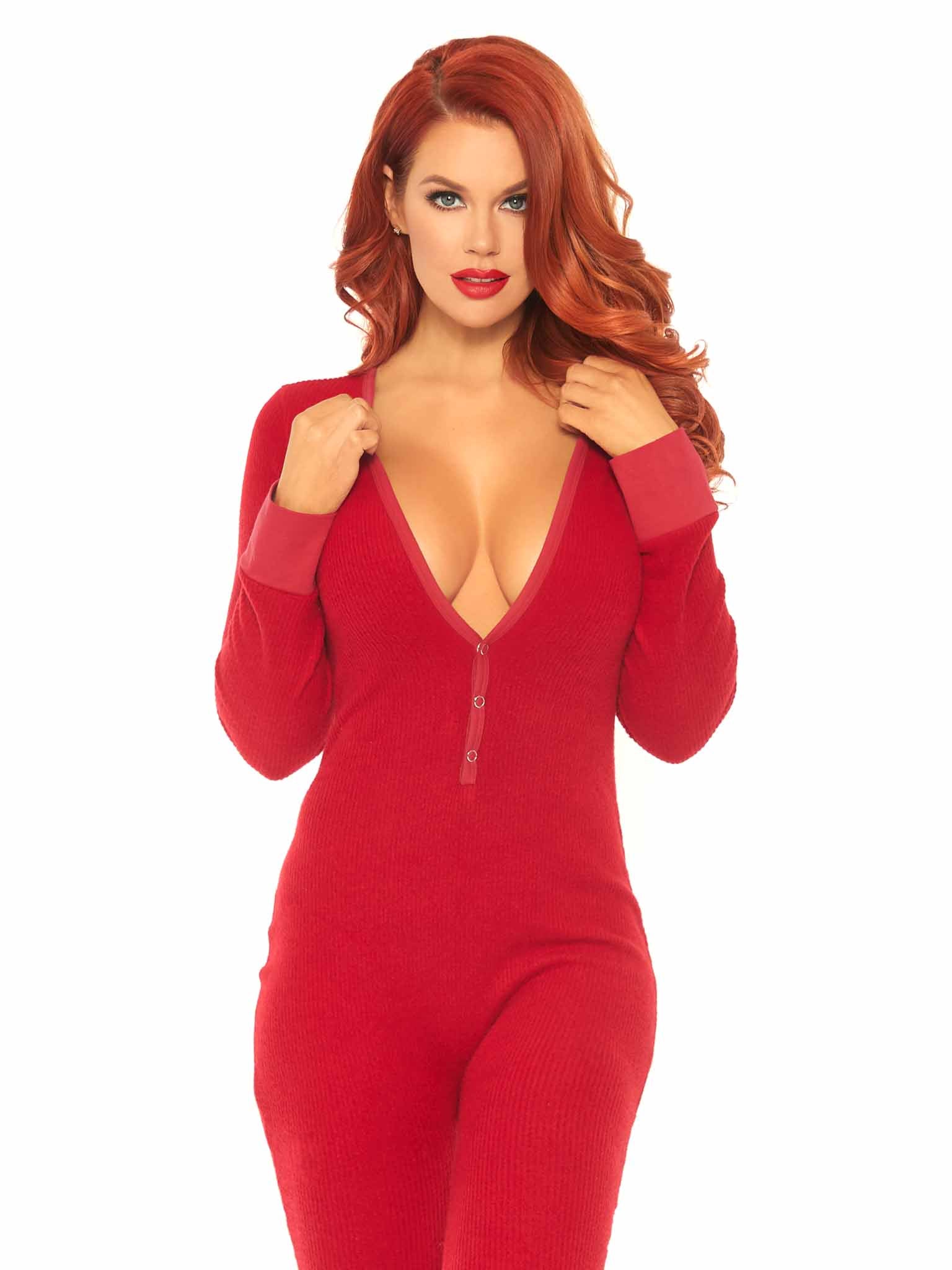 Sexy womens sleepwear meets cute loungewear in these ultra-soft women's long johns by Leg Avenue, featuring cozy brushed rib fabric, plunging deep-v front with snap buttons, and cheeky snap closure back flap. Perfect for sleepovers and lazy Sunday mornings, these cute thermals will definitely have you wanting to stay in bed.