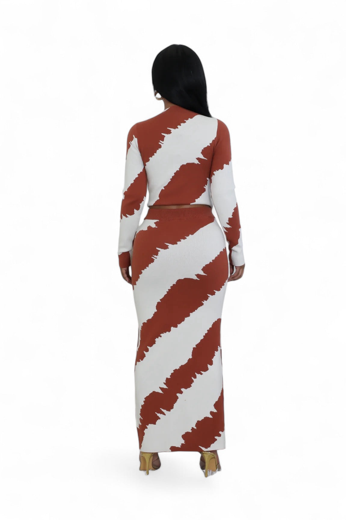 Get ready to slay in this Knit Top and Skirt Two Piece Set! Made with a stretchy knitted fabric, this set features a round neckline and long sleeves for a comfortable fit. The high-waisted skirt has an elastic waistband for easy wear. Perfect for a stylish and effortless look.