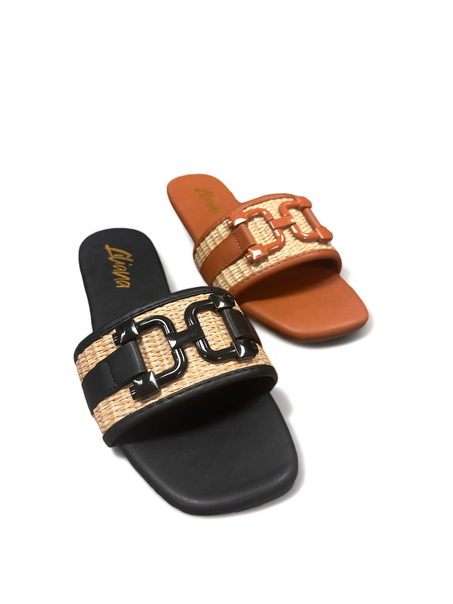 Introducing Lisa-26, the perfect blend of style and sustainability! These slide sandals by Liliana feature a trendy horse shoe link design made from vegan leather and straw material. Walk confidently knowing you're making a sustainable choice without sacrificing fashion.