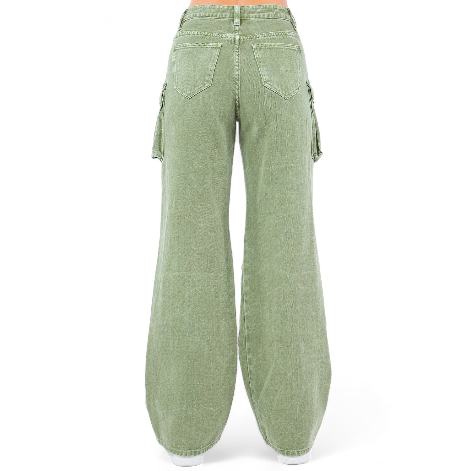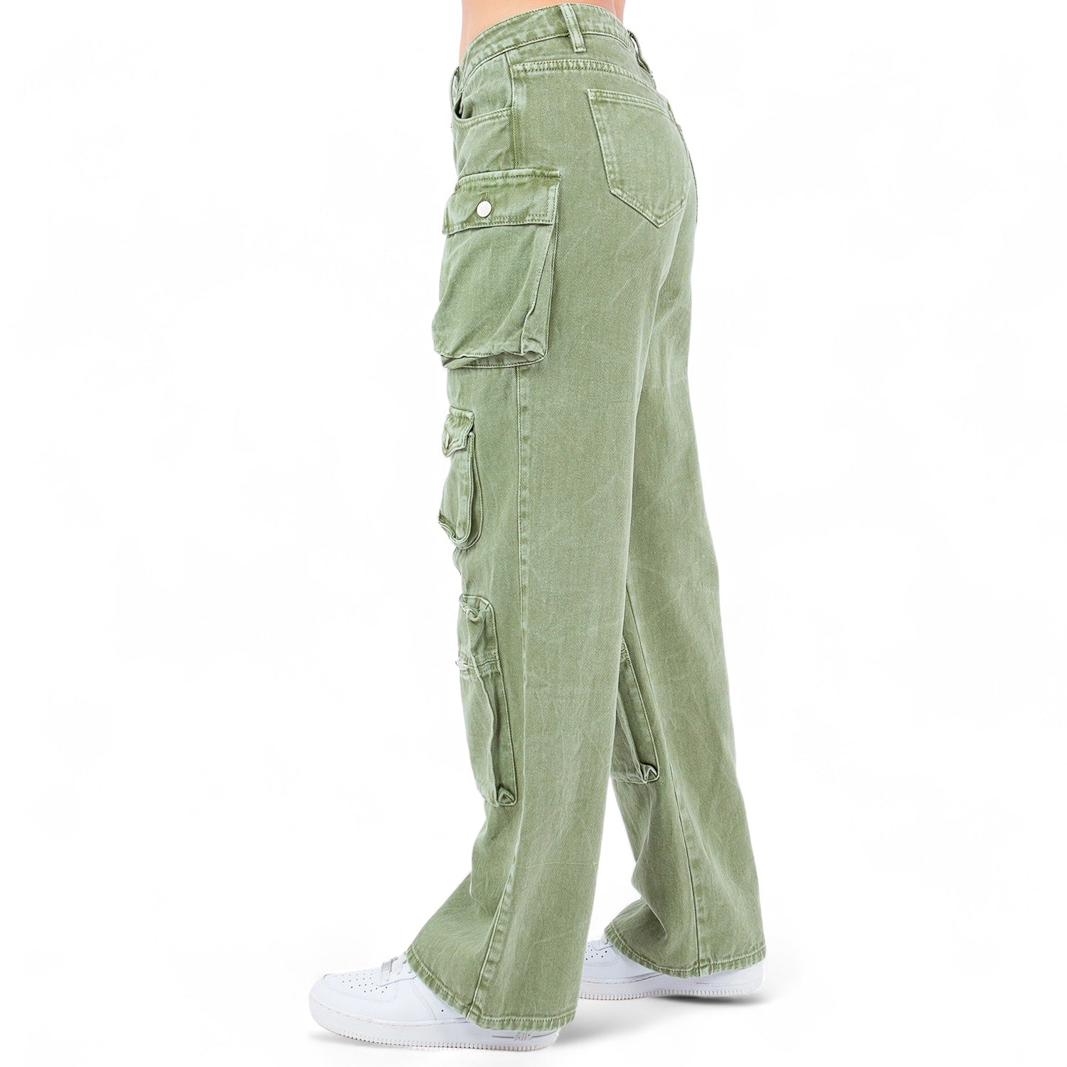Multi Pockets Denim Wide Leg Cargo Pants-RJH30564