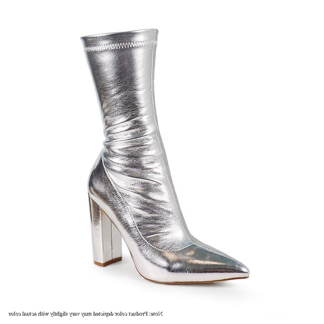 Constructed from Metallic vegan leather, the Nordic-19 Ankle Boots feature a stylish block heel and a zipper on the inside of the leg for easy wear. The stack heel adds a touch of sophistication to any outfit. Elevate your style with these fashionable and animal-friendly boots. Perfect for any occasion.