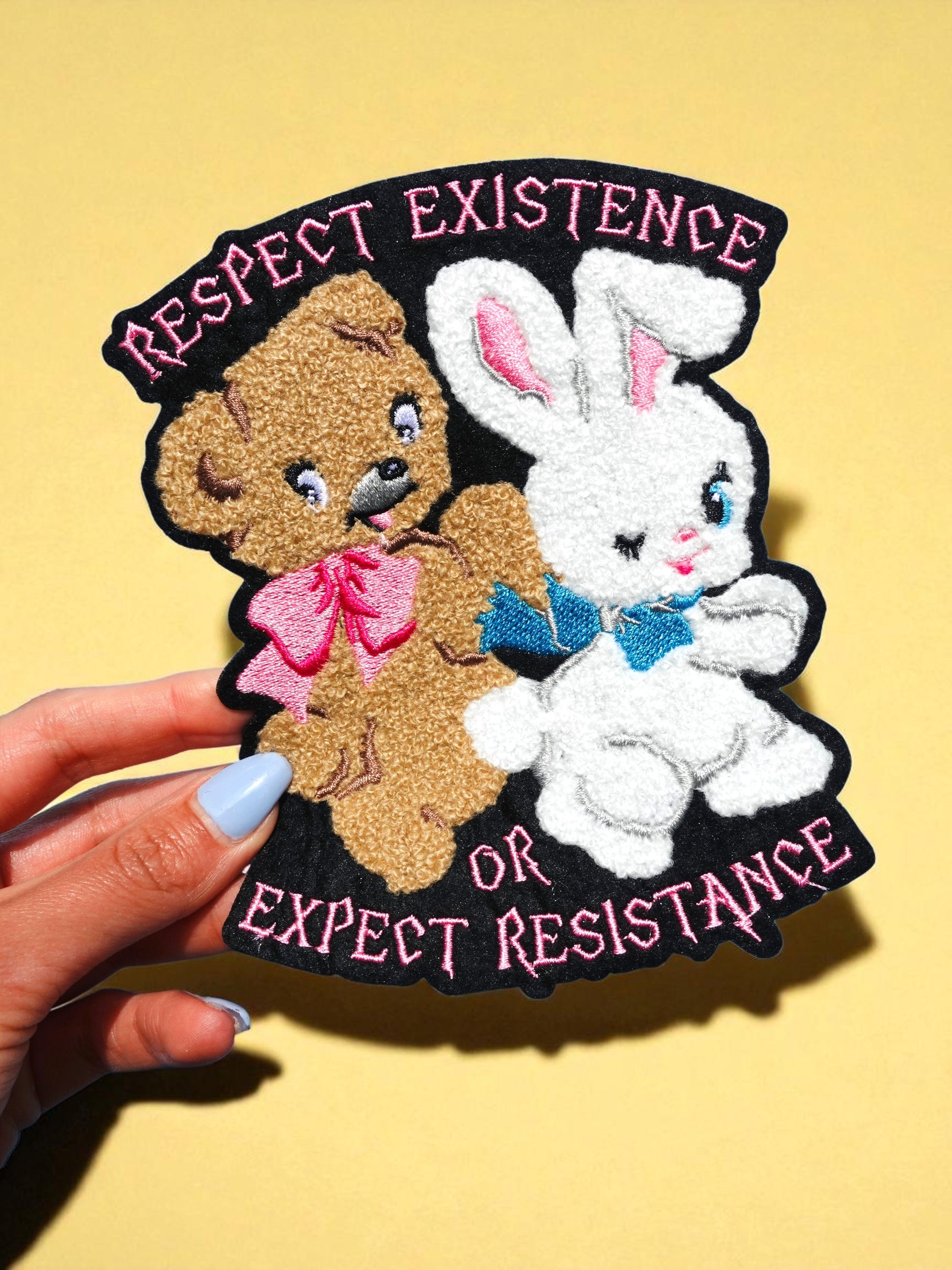 This bold embroidered patch features a vintage-style teddy and bunny duo with serious main character energy — and a message that doesn’t play. Whether you’re stitching it to your jacket, bag, or battle vest, this pastel punch of protest makes your stance very clear.