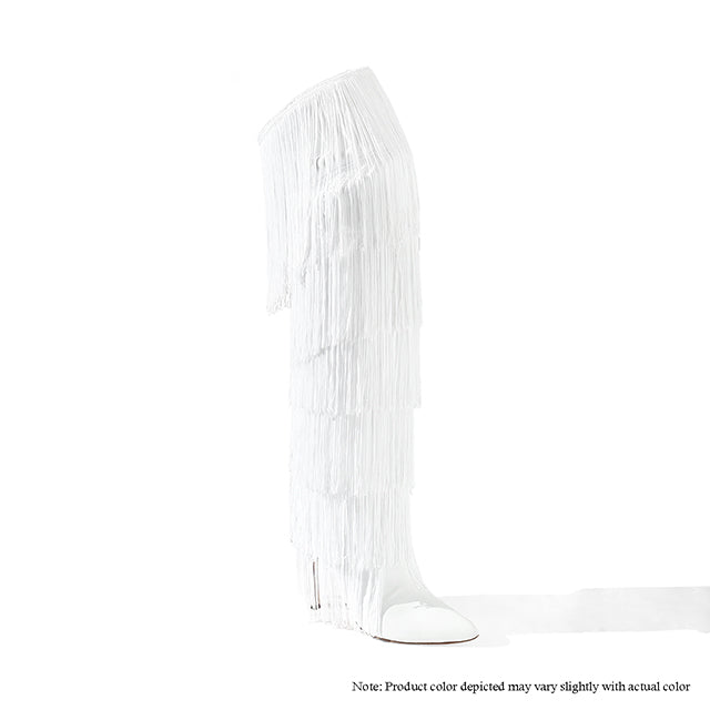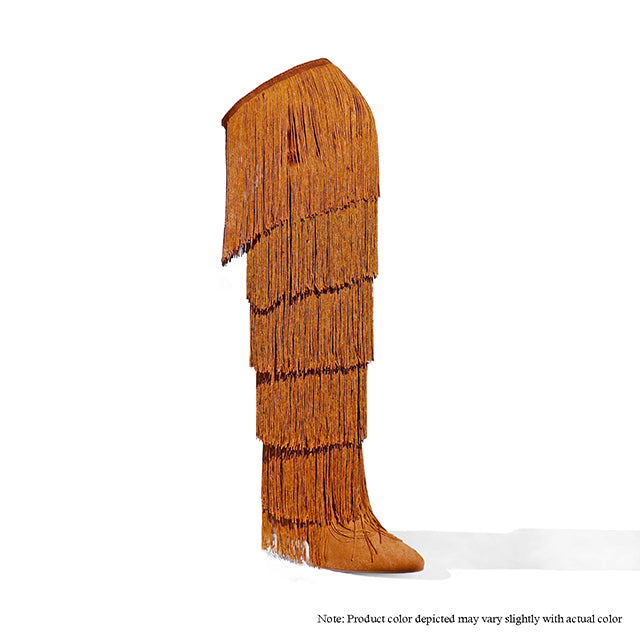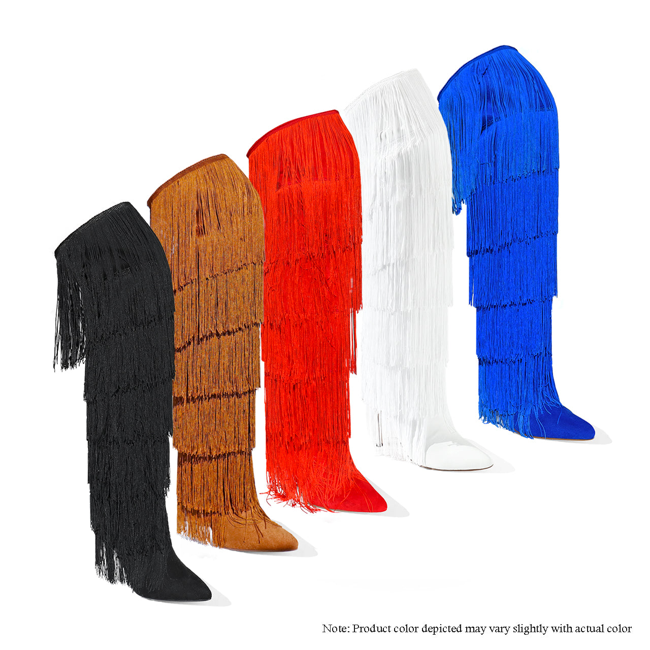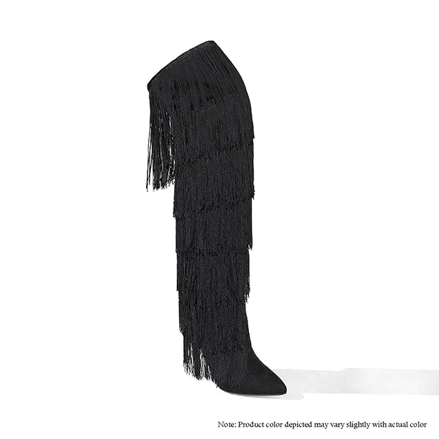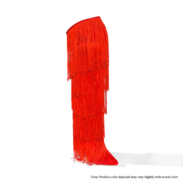 When you step out in the Scandalous-26 over the knee boots by Liliana, you're making a bold statement. These fierce boots feature a 4.5' heel and a fringe-accented matching bag to complete your outfit.