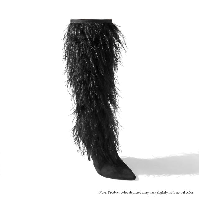 When you step out in the Scandalous-3 ostrich feather knee high boots by Liliana, you're making a bold statement. These fierce boots feature a 4.5' heel and soft ostrich feathers. These boots are perfect for a night out or for adding a touch of edge to your everyday style. With a comfortable fit and sleek design, the Scandalous-3 knee high boots are a must-have for any fashion-forward wardrobe.