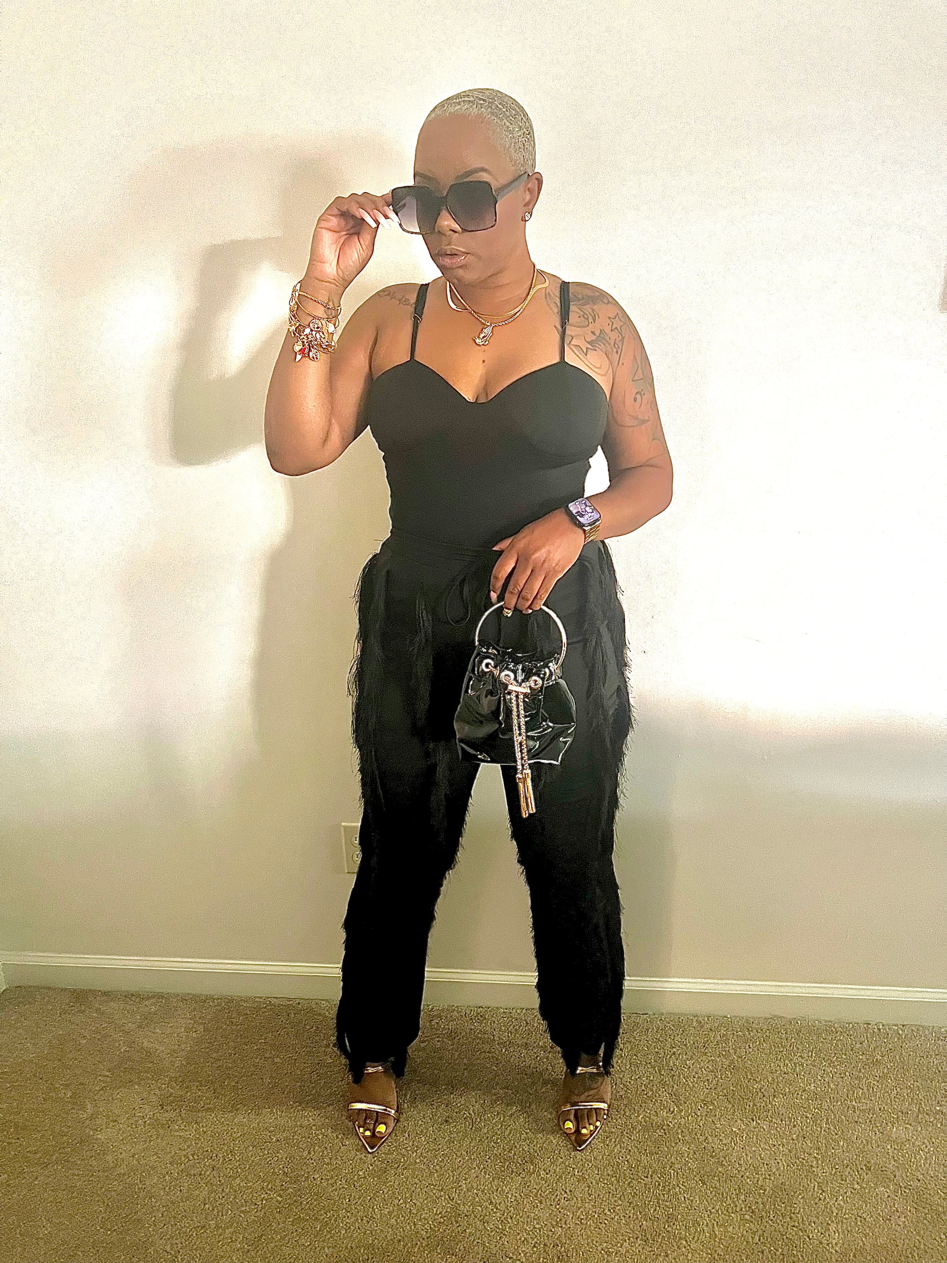 Two Piece Bodysuit & Tassel Pants Set {has very good stretch}