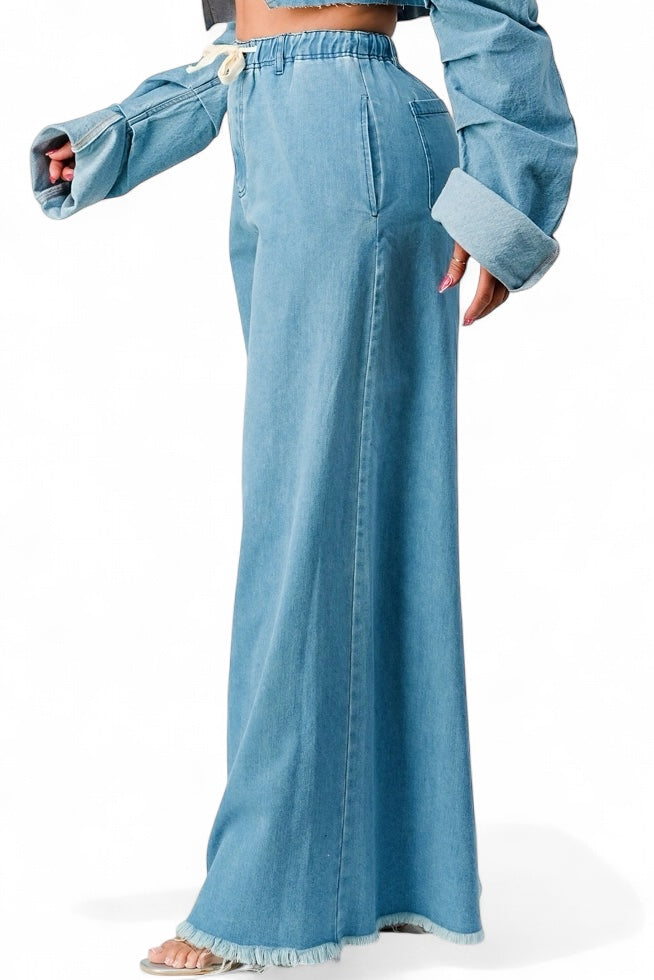Expertly crafted from high-quality denim, our stylish Wide Leg Denim Pants offer a flattering high waist and elastic waistband for ultimate comfort. The wide leg design adds a touch of sophistication to any outfit, making these pants a versatile and must-have addition to any wardrobe.